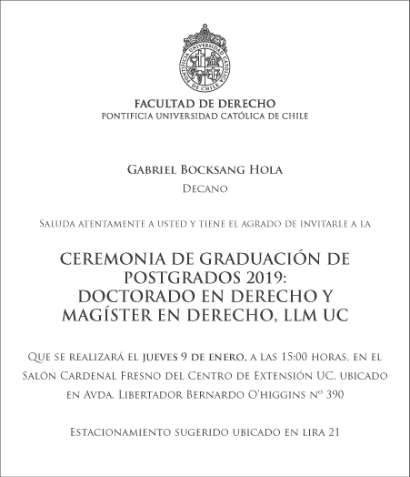 - Ceremonia de Graduación de Postgrados 2019: Doctorado en Derecho y Magíster en Derecho, LLM UC