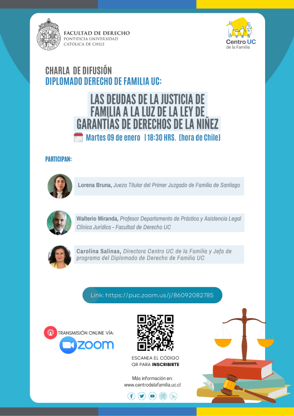Charla de difusión Diplomado Derecho de la Familia UC: Las deudas de la justicia de familia a la luz de la ley de garantías de derechos de la niñez