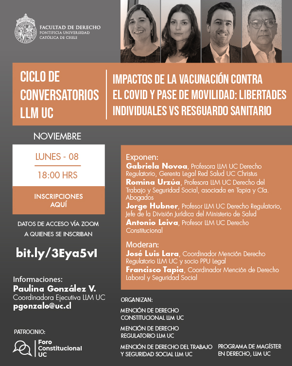 - Ciclo de Conversatorios LLM UC: Impactos de la Vacunación contra el COVID y Pase de Movilidad. Libertades Individuales VS Resguardo Sanitario