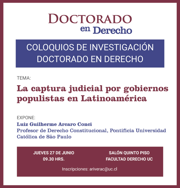 - Coloquios de investigación Doctorado en Derecho: La captura judicial por gobiernos populistas en Latinoamérica