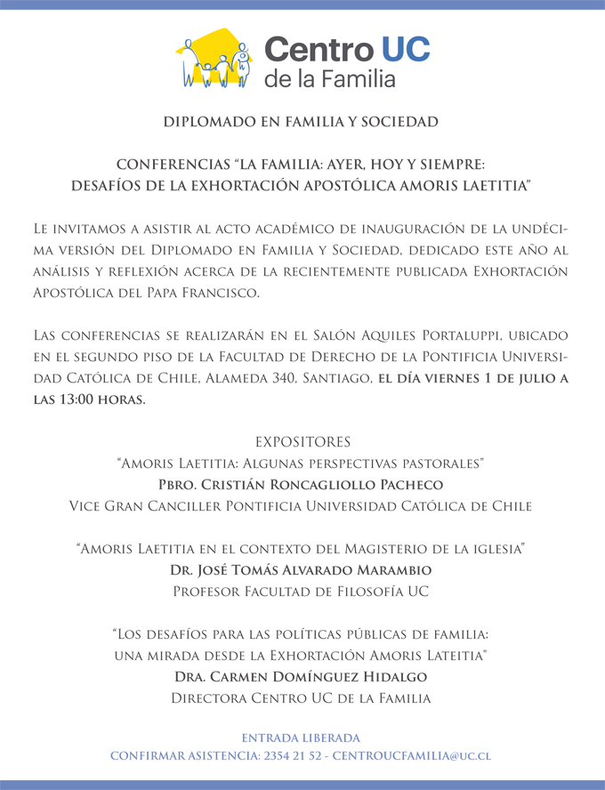 - Conferencias La Familia: Ayer, hoy y siempre. Desafíos de la exhortación apostólica ‘Amoris Laetitia’