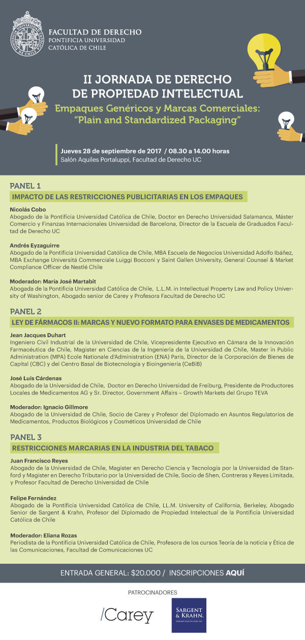 - II Jornada de Derecho de Propiedad Intelectual. Empaque genéricos y marcas comerciales: “Plain and standardized packaging”