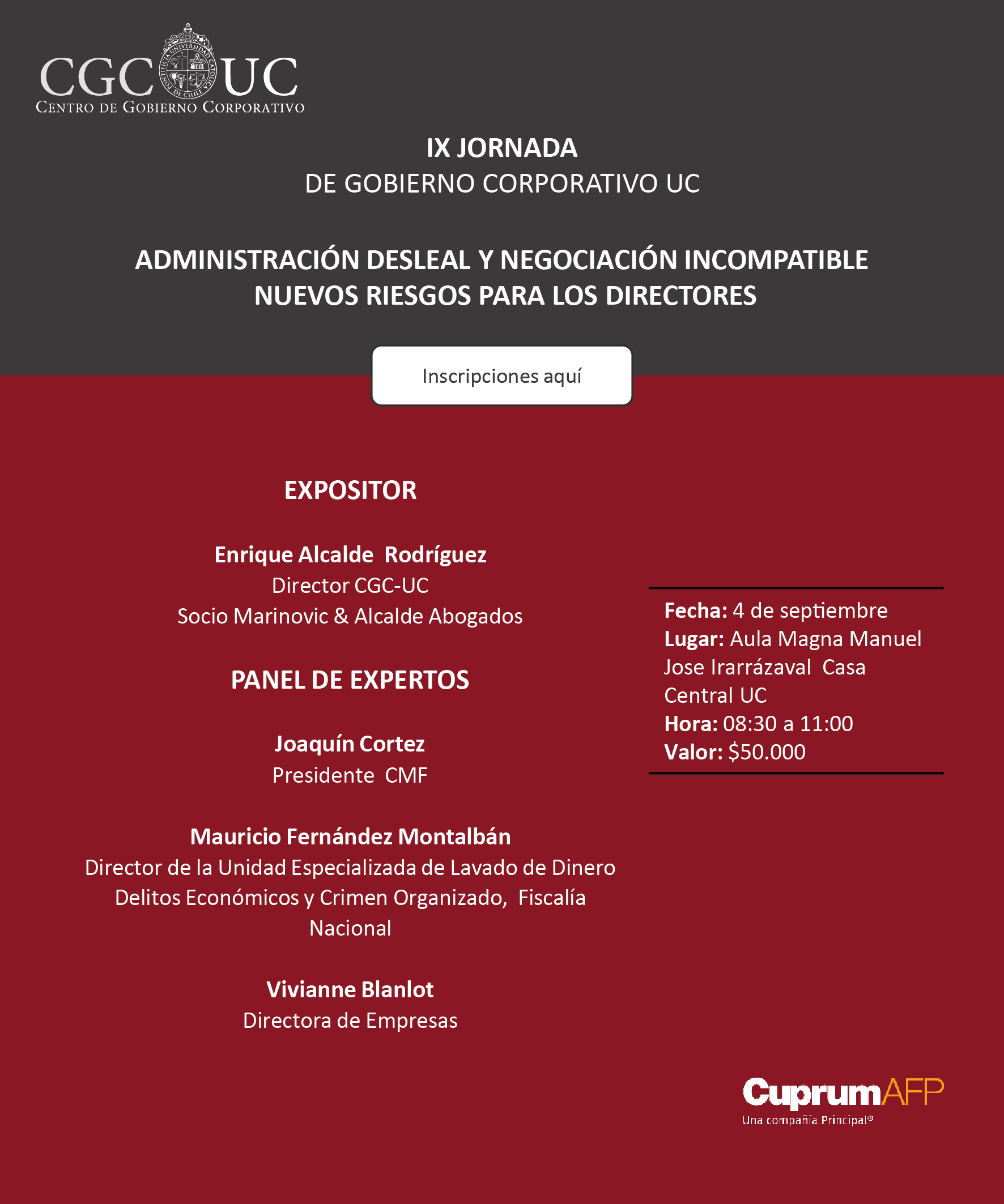 IX Jornada de Gobierno Corporativo UC: Administración Desleal y Negociación Incompatible. Nuevos Riesgos para Directores