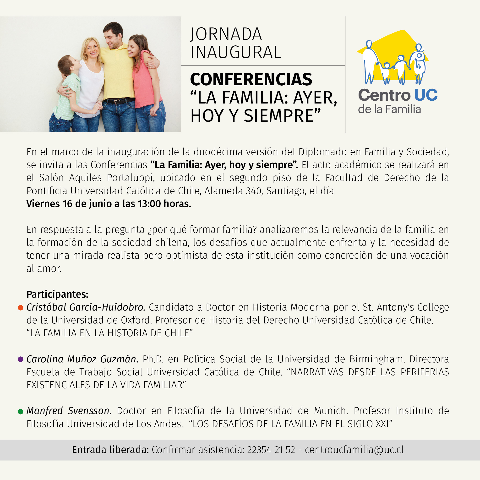 - Jornada inaugural de Conferencias La Familia: Ayer, hoy y siempre