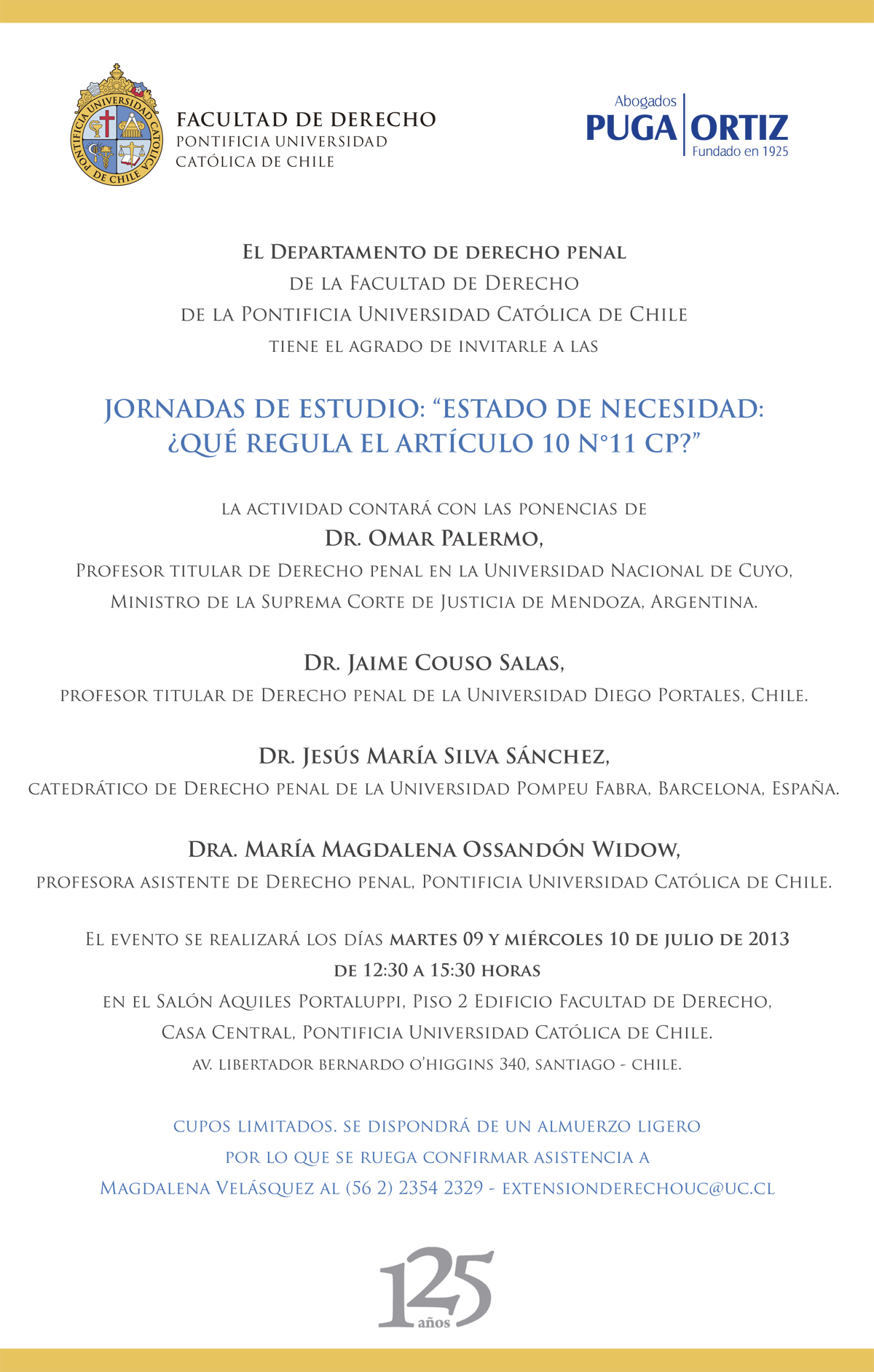 Jornadas de Estudio: “Estado de necesidad ¿Quién regula el Artículo 10 N°11 CP?