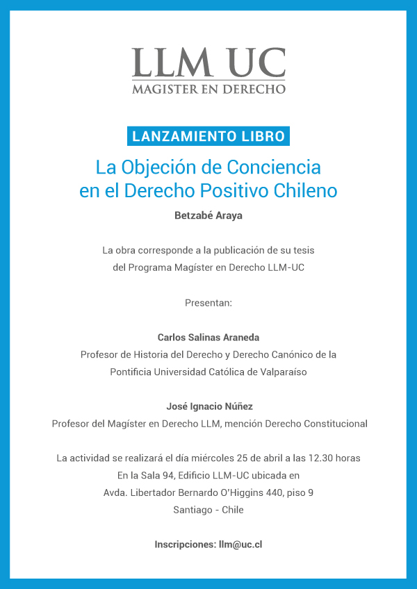 - Lanzamiento de libro: La objeción de conciencia en el Derecho Positivo chileno