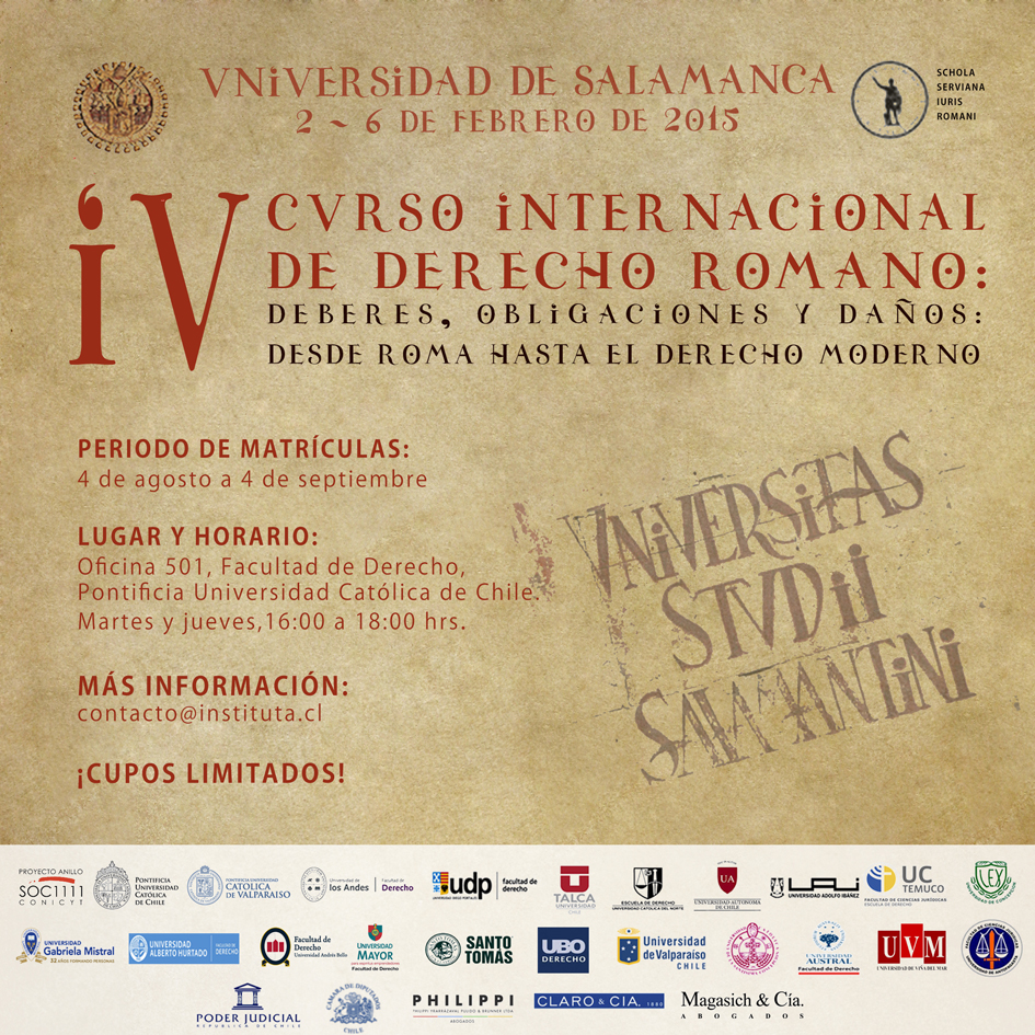Plazo de matrículas IV Curso Internacional de Derecho Romano – Salamanca