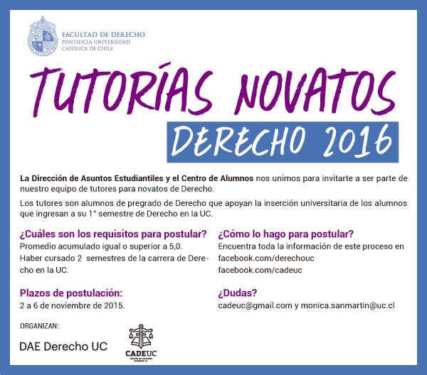 Plazo de postulación: Tutorías Novatos Derecho 2016