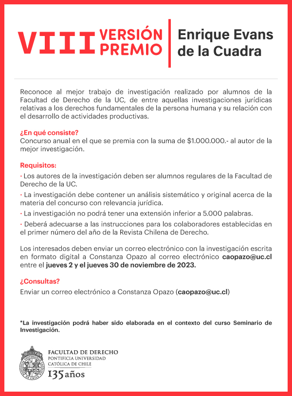 - Plazo de postulación: VIII Versión del Premio Enrique Evans de la Cuadra