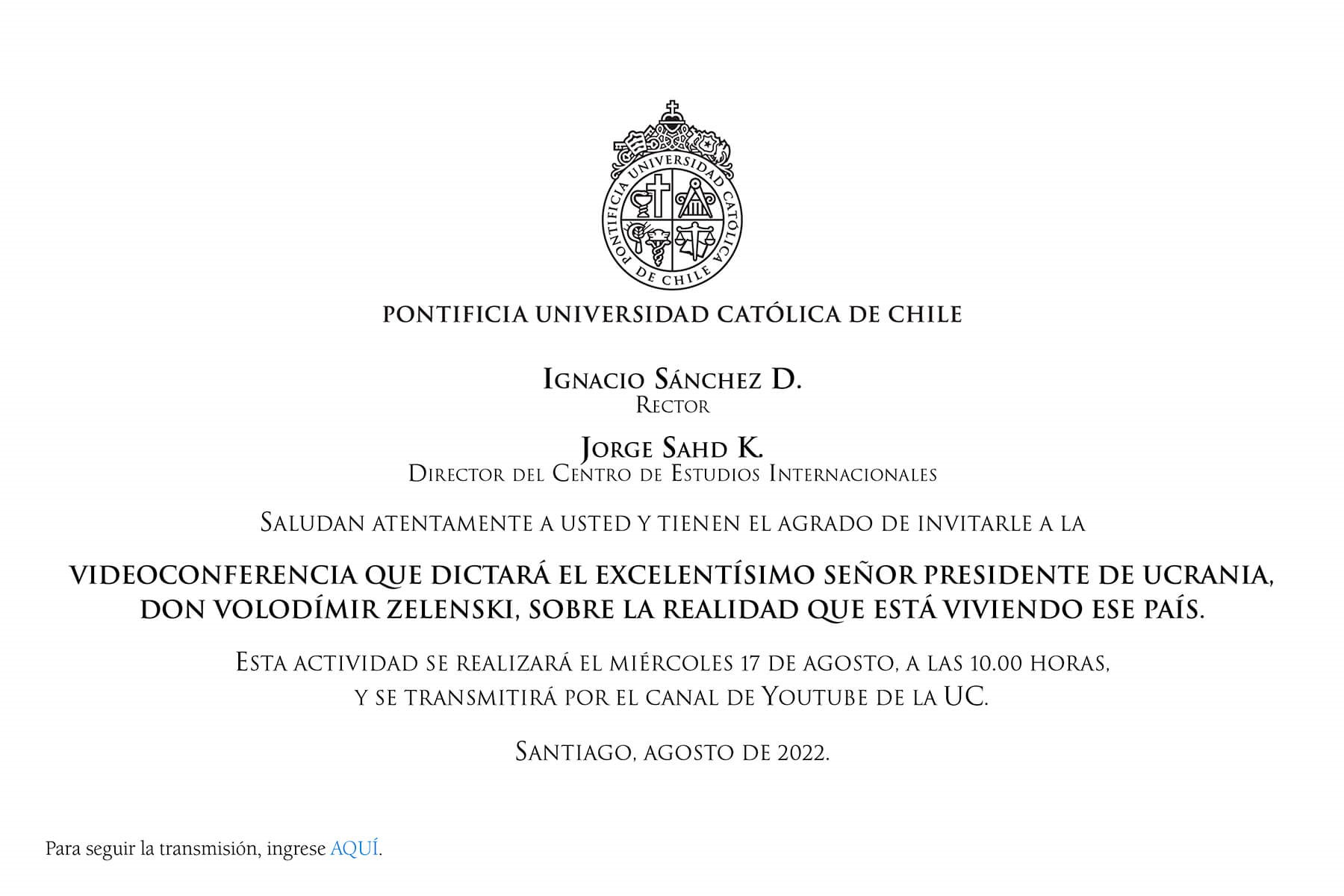 Presidente Volodímir Zelensky dialoga con la UC