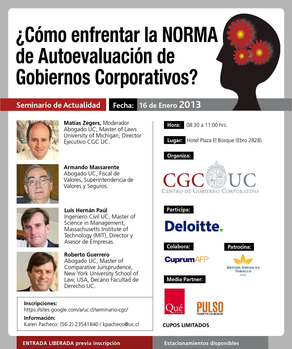 - Seminario: ¿Cómo enfrentar la norma de autoevaluación de Gobierno Corporativo?