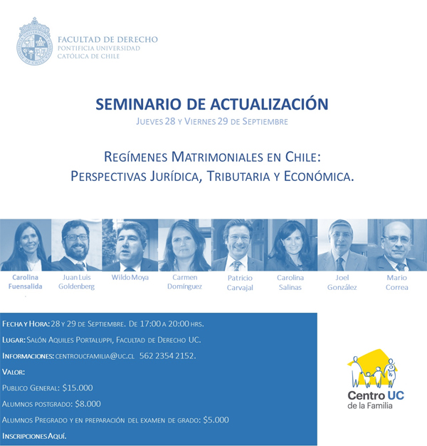 - Seminario de actualización Regímenes matrimoniales en Chile: Perspectivas jurídica, tributaria y económica