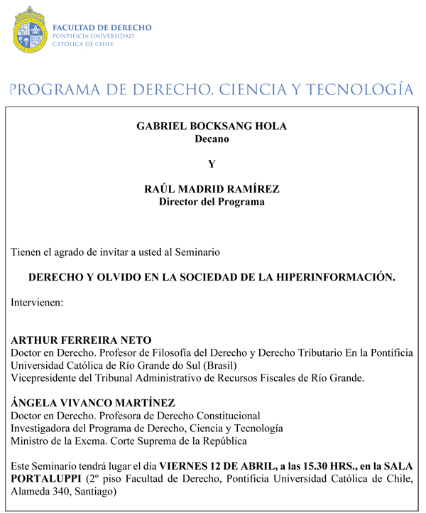 - Seminario: Derecho y olvido en la sociedad de la hiperinformación