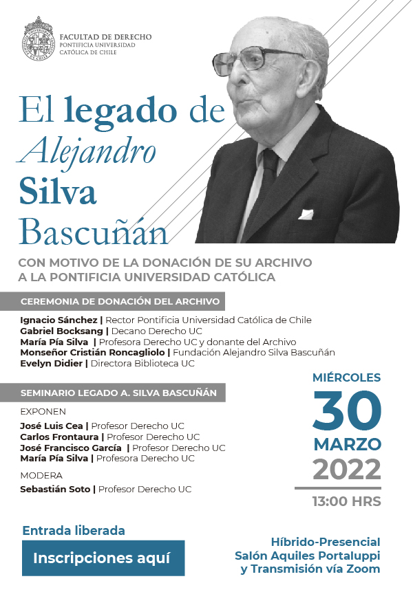 - Seminario: El legado de Alejandro Silva Bascuñán. Con motivo de la donación de su archivo a la Pontificia Universidad Católica