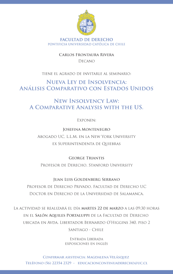 - Seminario: Nueva Ley de Insolvencia. Análisis comparativo con Estados Unidos