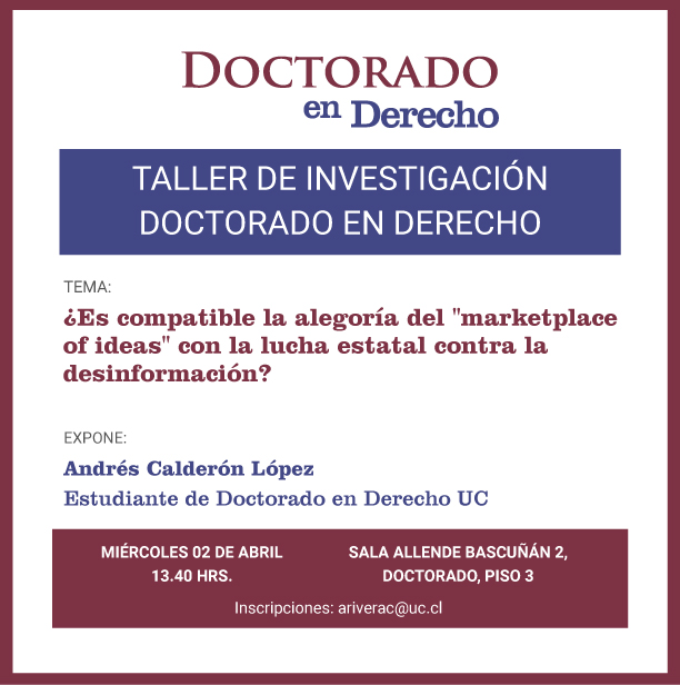- Taller de investigación Doctorado en Derecho: ¿Es compatible la alegoría del “marketplace of ideas” con la lucha estatal contra la desinformación?