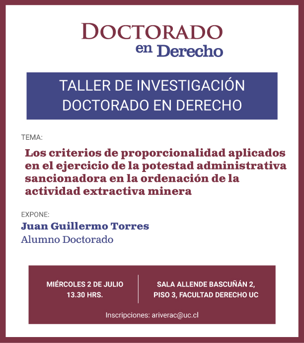 Taller de investigación Doctorado en Derecho: Los criterios de proporcionalidad aplicados en el ejercicio de la potestad administrativa sancionadora en la ordenación de la actividad extractiva minera