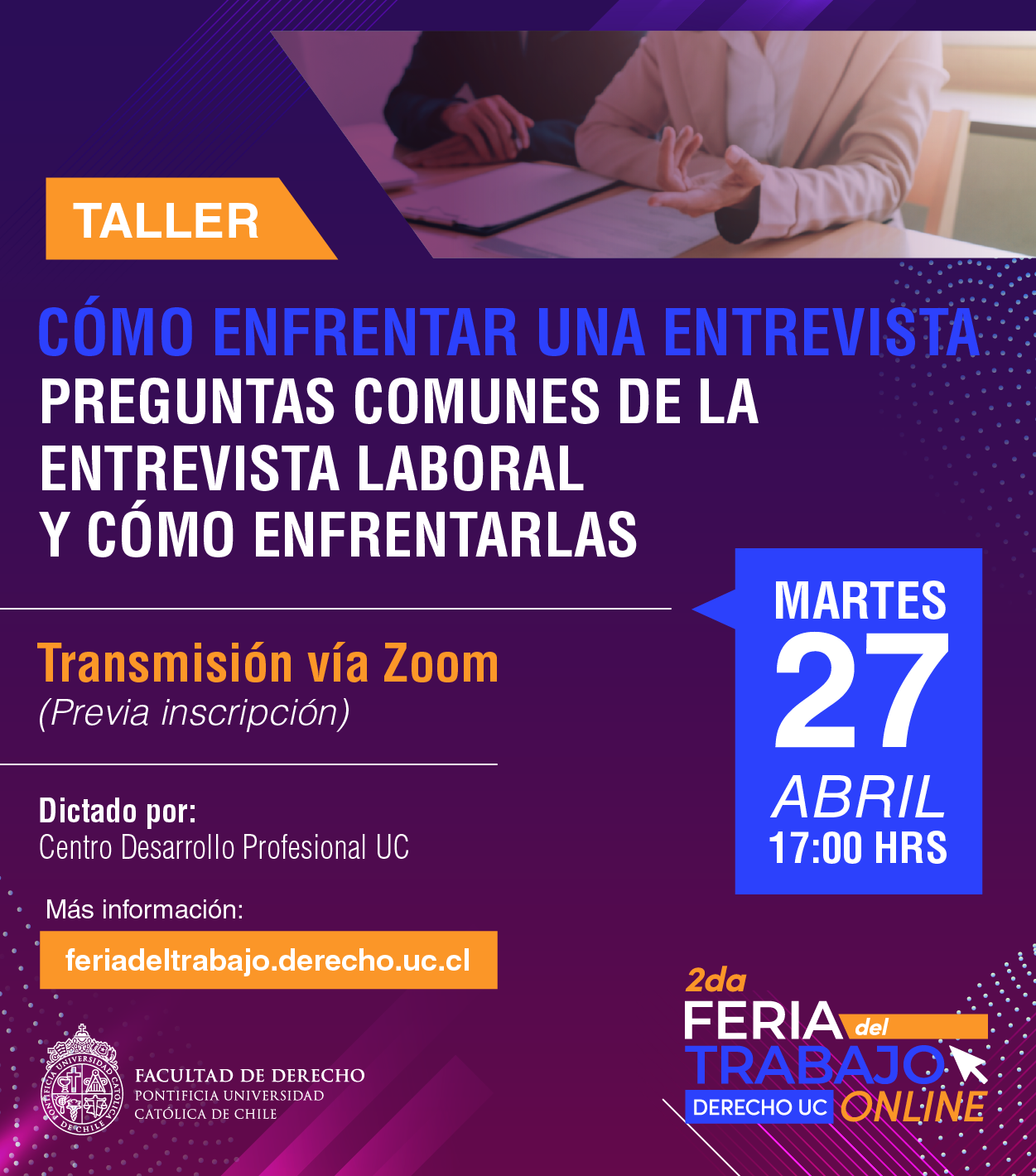 Taller Feria del Trabajo Derecho UC: Cómo Enfrentar una Entrevista. Preguntas Comunes de la Entrevista Laboral y Cómo Enfrentarlas