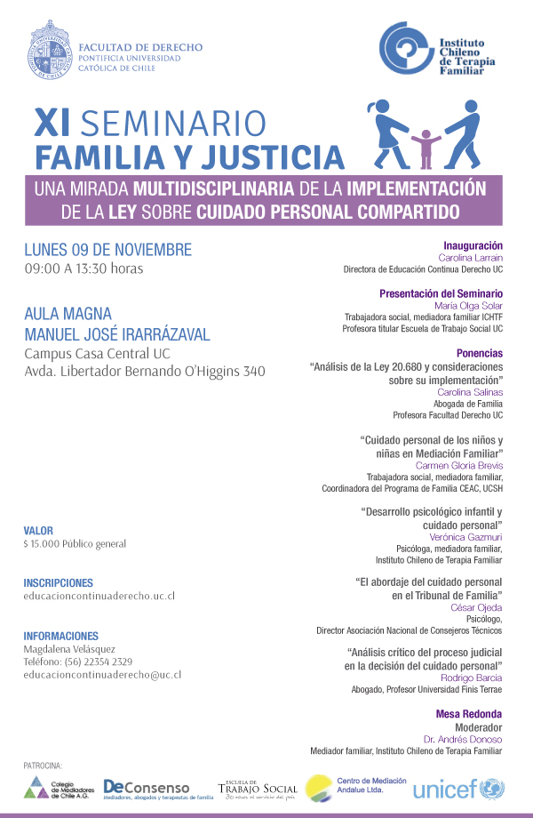 - XI Seminario Familia y Justicia: Una mirada multidisciplinaria de la implementación de la ley sobre cuidado personal compartido