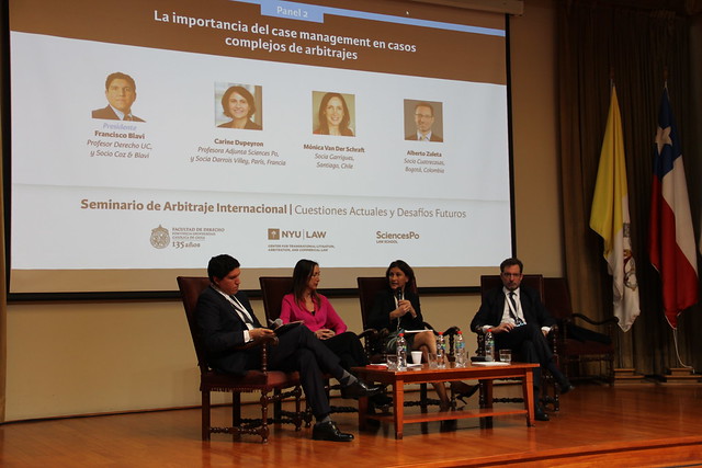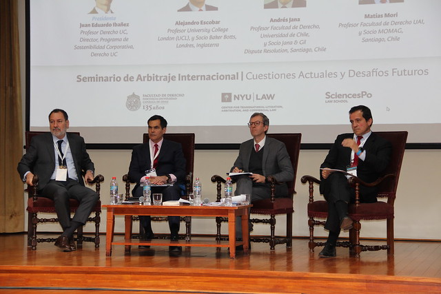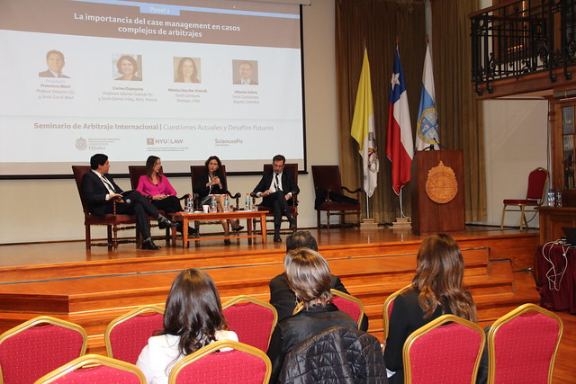El arbitraje Internacional se tomó Derecho UC el pasado 16 y 17 de noviembre. Durante dos jornadas profesionales líderes en esta materia, provenientes de las mejores Facultades de Derecho latinoamericanas, y de universidades de renombre mundial -NYU, Columbia, Harvard, Paris 1 y 2, Cambridge, Oxford, Roma, entre otras-, se dieron cita en la primera versión del Seminario Arbitraje Internacional: Cuestiones Actuales y Desafíos Futuros.